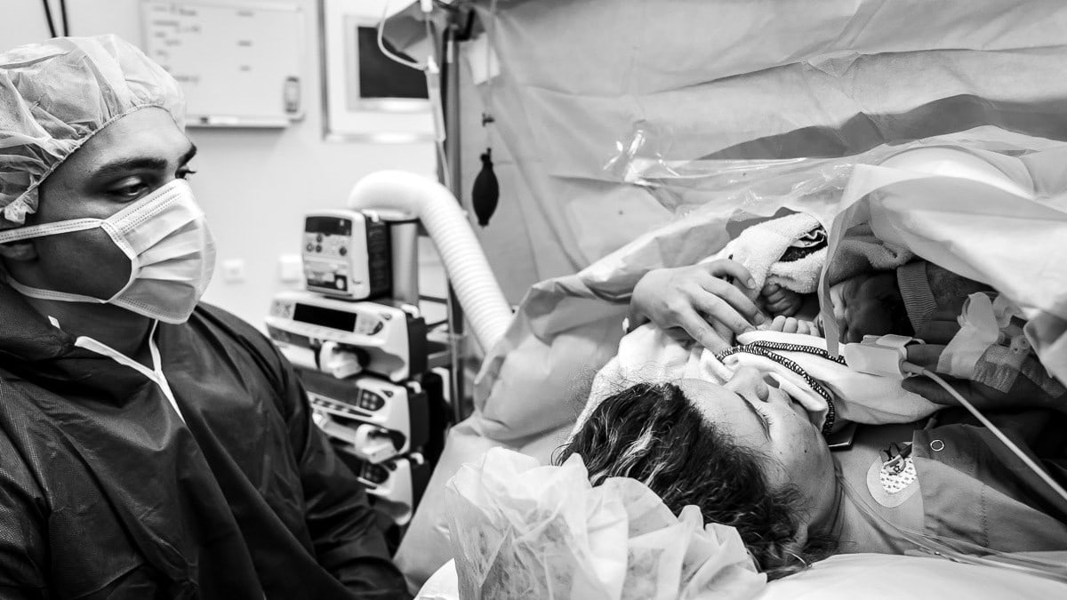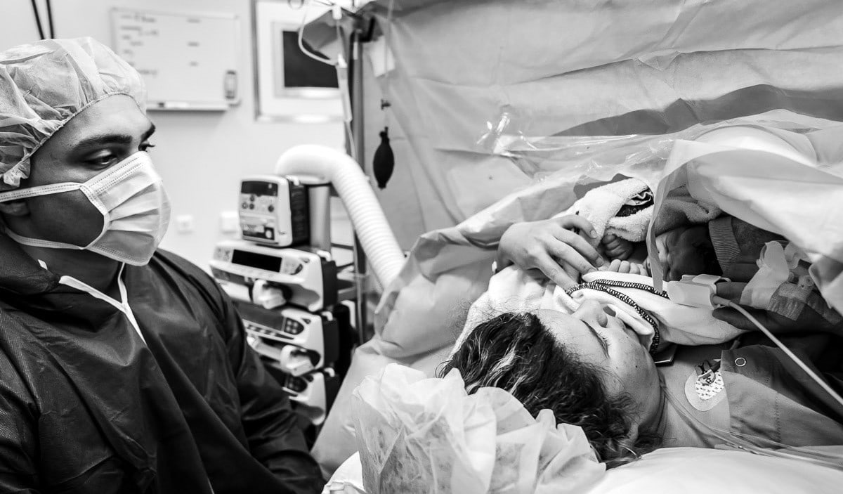 Op de dag van de geplande keizersnede meld ik me met jullie in het ziekenhuis. Ik leg alle voorbereidingen vast tot we naar de ok toe gaan. Die laatste foto van je dikke buik, de laatste foto van jullie met zijn tweeën, de spanning, de emoties. Tijdens de keizersnede fotografeer ik de geboorte van jullie kindje, de controles door de kinderarts of verloskundige en het moment dat jullie kindje bij mama op haar borst wordt gelegd. Ik blijf bij jullie om al die mooie momenten vast te leggen, zodat jullie je helemaal kunnen focussen op elkaar.
